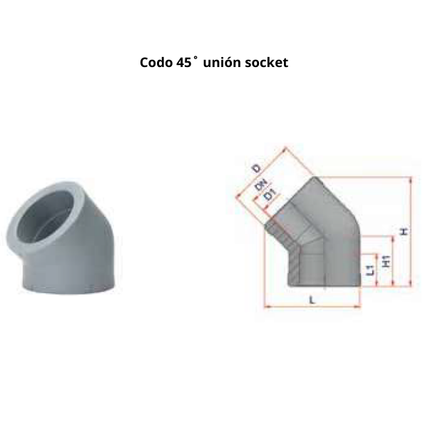 Codo 45˚ NIRON PREMIUM Unión Socket   Ø40mm