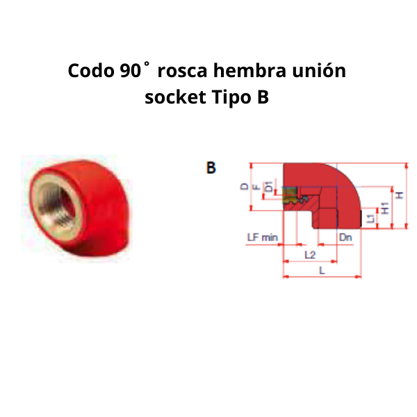 Codo 90˚ rosca hembra unión socket Ø32mm 3/4″