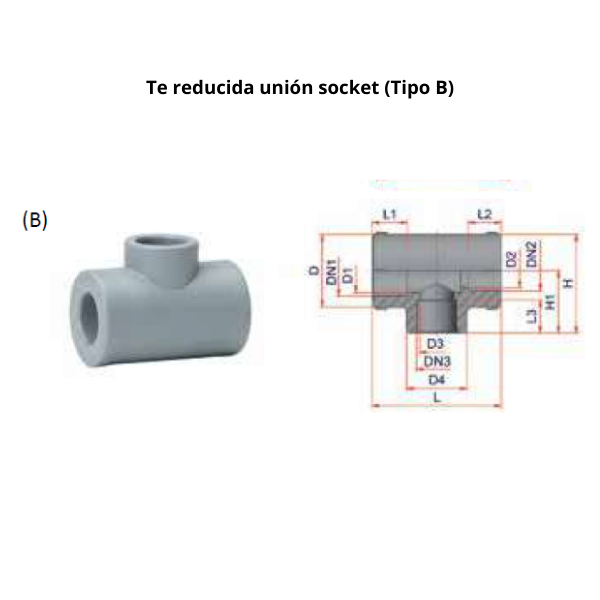 Material: PP-RCT RA7050 color gris Sistema de unión: Termofusión socket Certificados ASTM F2689, ASTM F2023, NSF14, NSF61, ICC-ES LC 1004 PMG, CSA B137.11-2009, EN ISO 15912