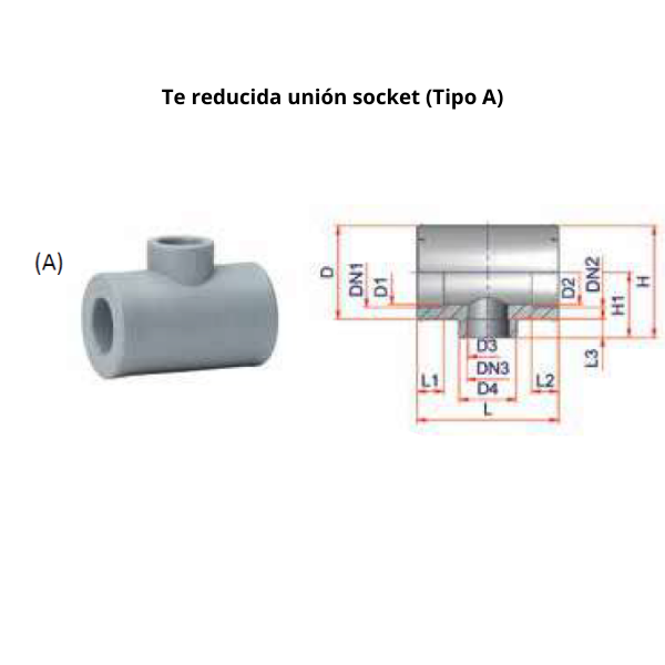 Material: PP-RCT RA7050 color gris Sistema de unión: Termofusión socket Certificados ASTM F2689, ASTM F2023, NSF14, NSF61, ICC-ES LC 1004 PMG, CSA B137.11-2009, EN ISO 15891