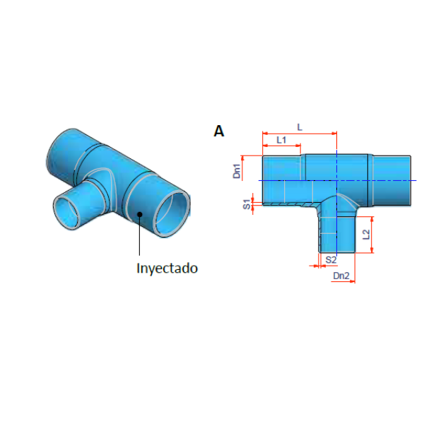 En función del stock disponible, los accesorios tipo A pueden ser inyectados o manipulados (Te + Reducción). La empresa fabricante se reserva el derecho a proveer el accesorio tipo A inyectado o manipulado en función de las necesidades.