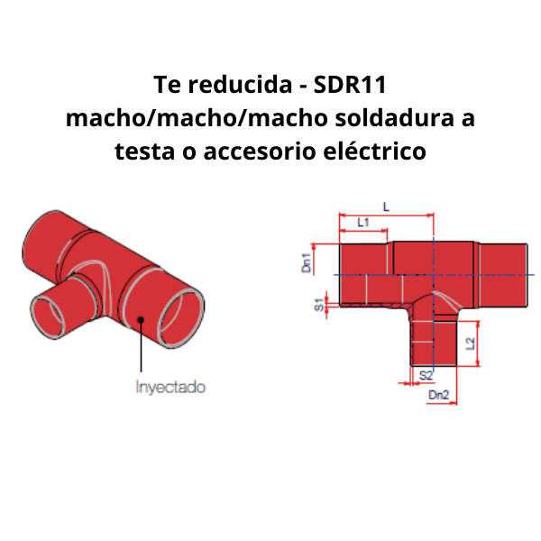 En función del stock disponible, los accesorios pueden ser inyectados o manipulados (Te + Reducción). La empresa fabricante se reserva el derecho a proveer el accesorio tipo A inyectado o manipulado en función de las necesidades.