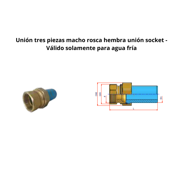 Unión tres piezas macho rosca hembra NIRON CLIMA unión socket Ø50mm 1 1/2”